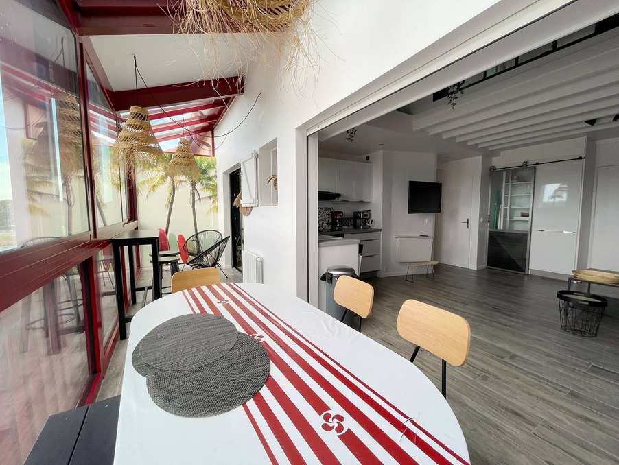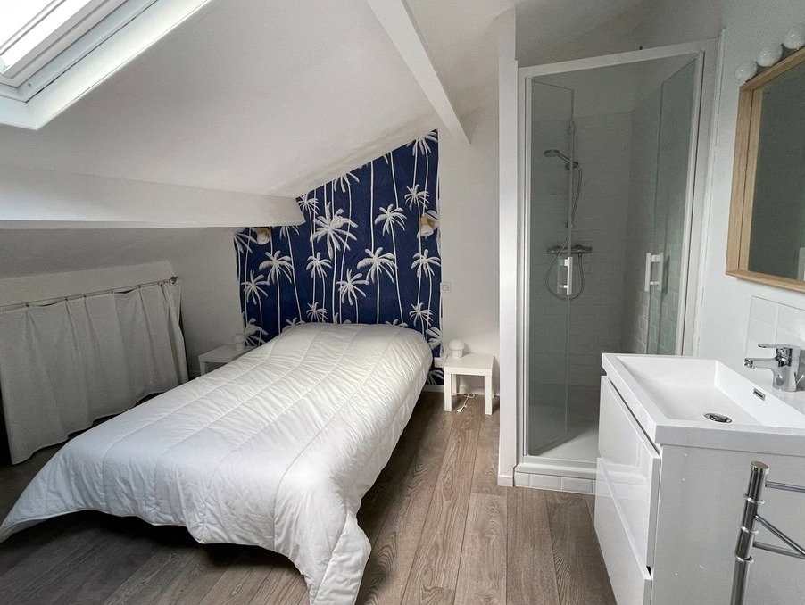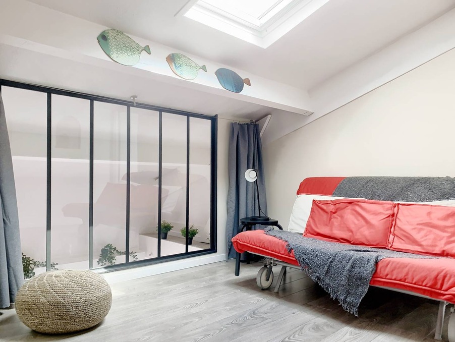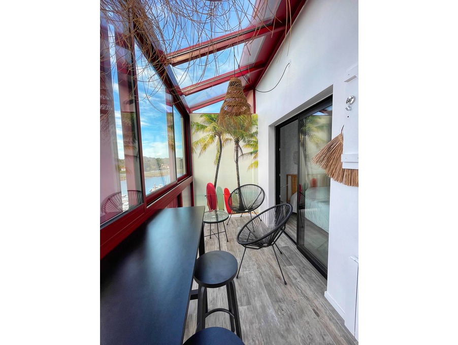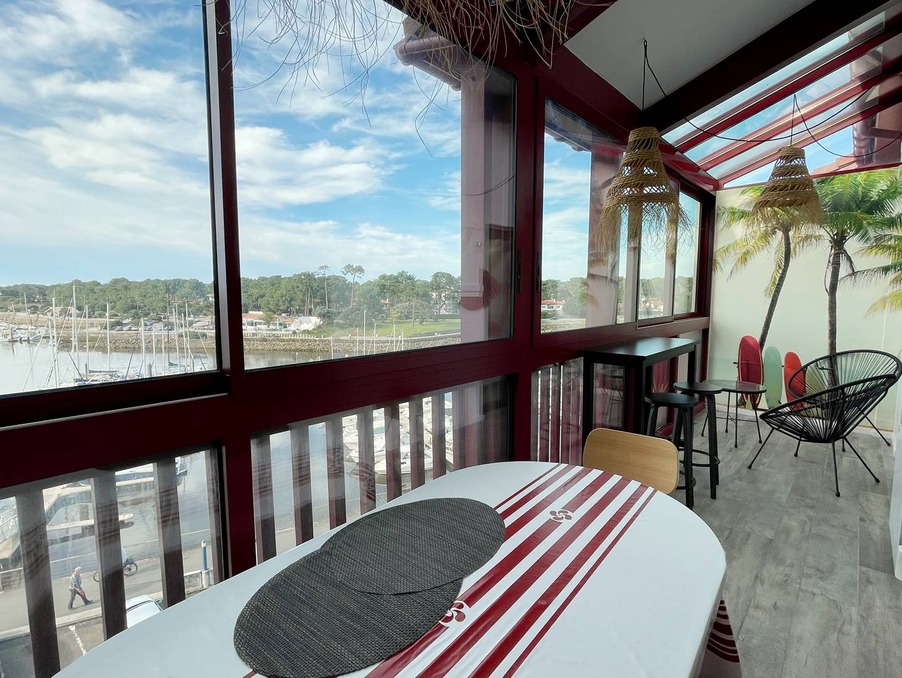 La loggia est aménagée d'un mange debout pour prendre vos petits déjeuner avec une vue plongeante sur le port, d'une table pour partager vos repas et d'un coin lecture. La cuisine est ouverte sur le salon. L'équipement de l'appartement est moderne, complet et fonctionnel (lave-linge, lave-vaisselle, télévision, four, micro-ondes). La fibre et une place de parking souterraine sont comprises dans la location. Côté nuit, au rez de chaussée, une chambre est équipée d'un lit double, de placards et d'une salle d'eau attenante. Des WC séparés sont également disponibles. A l'étage vous trouverez: un BZ sur la mezzanine et une seconde chambre avec un lit double et un coin salle d'eau. Coup de coeur assuré !