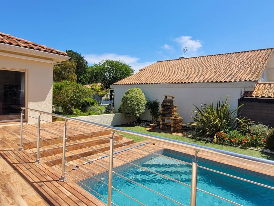 Au coeur d'un quartier résidentiel, à quelques pas des commerces et du marché de Capbreton, découvrez cette maison de vacances agréable pouvant accueillir jusqu'à 6 personnes. L'extérieur offre un barbecue, une piscine, un espace repas et un beau jardin. L'espace jour est composé d'une cuisine fermée et très bien équipée (lave vaisselle, lave linge, four, grille pain, cafetière avec percolateur...), le salon avec canapé, fauteuils et télévision donne accès à la terrasse et au jardin, et le coin salle à manger pourra recevoir tous les voyageurs. Côté nuit, vous trouverez 3 chambres doubles avec placards dont 2 donne accès à l'extérieur avec vue sur la piscine. La salle de bain avec douche et baignoire est séparée des WC. Les draps et les serviettes sont fournis. La maison dispose d'un accès à internet. La stationnement est possible devant la maison. Le studio situé dans le garage sera occupé par la propriétaire