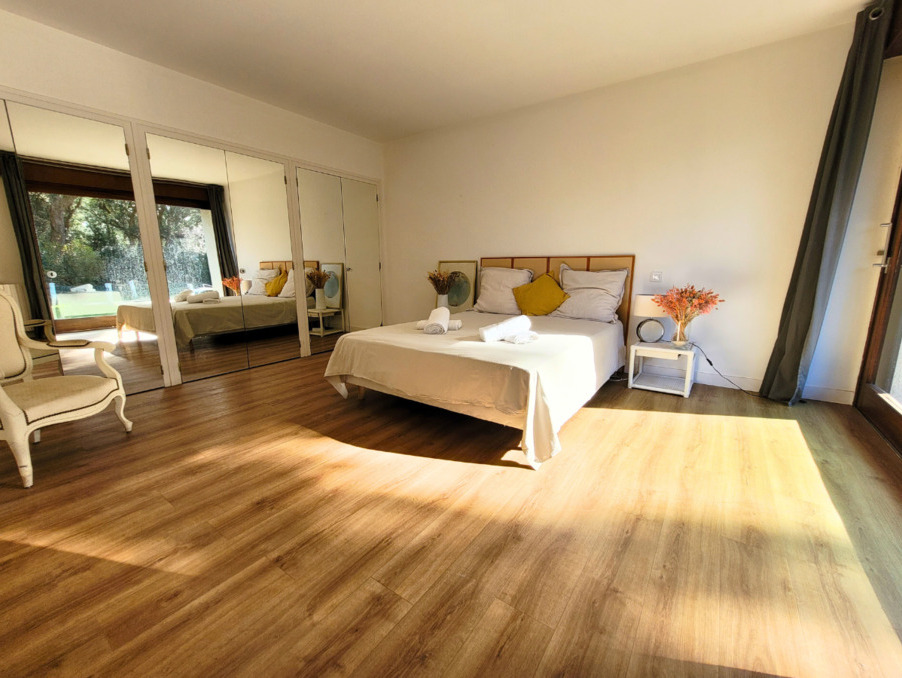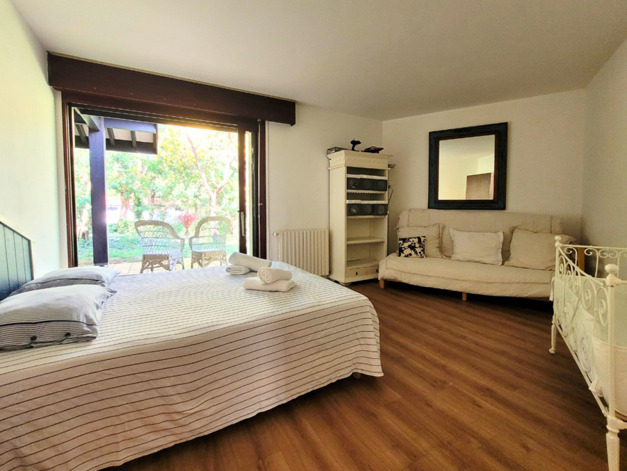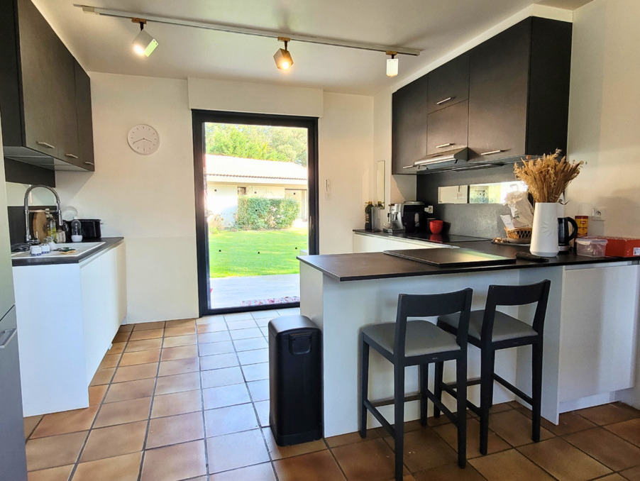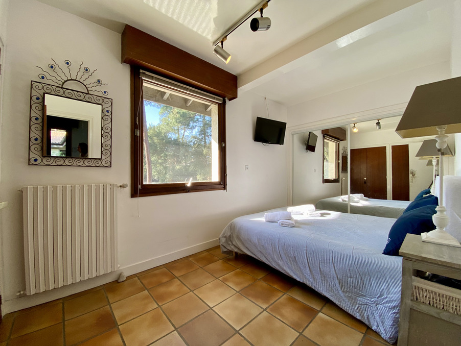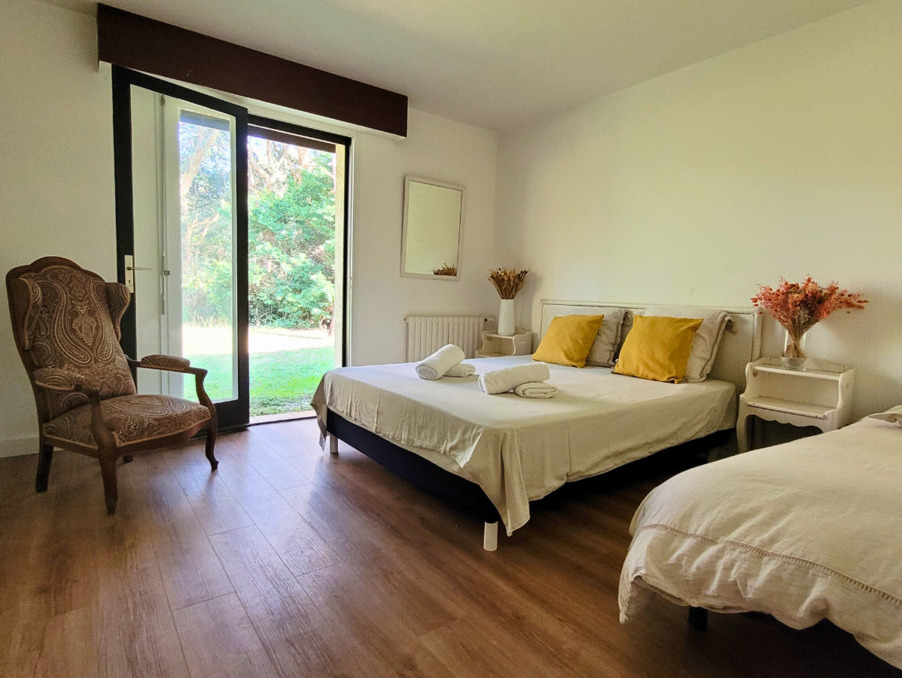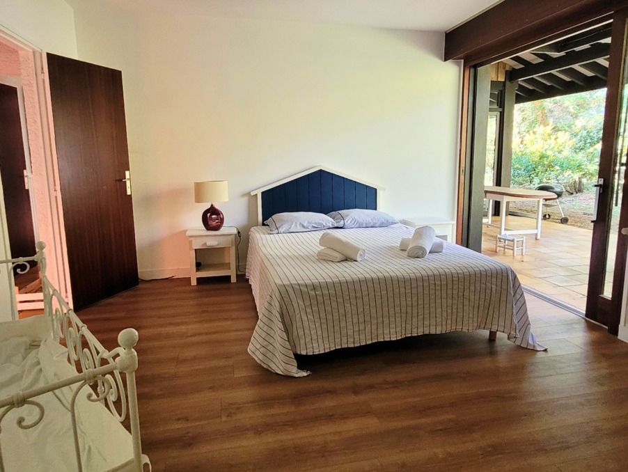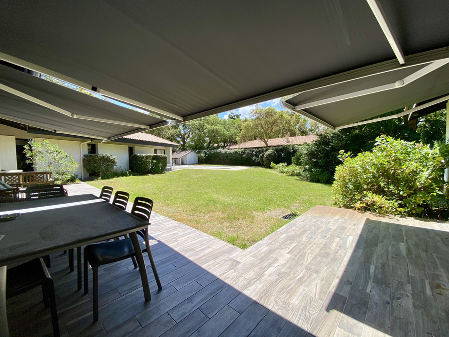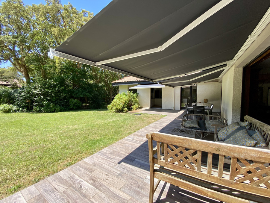 Villa d'architecte de plain-pied à vendre à Hossegor entre lac et mer. Découvrez cette villa d'architecte de plain-pied, signée par un architecte réputé des années 1980, situés dans un secteur privilégié à 100m du lac et moins de 500m de la plage de la Gravière. Offrant un calme absolu et un environnement remarquable, cette propriété se distingue par ses grands volumes, sa construction solide et son parc dominant sans vis-à-vis. Batie au début des années 80, d'une surface de 250 m2 habitable sur un terrain plat légèrement dominant de 2550 m2, elle offre des volumes généreux autour d'un vaste séjour lumineux avec des hauteurs sous plafond. Exposée au sud, ses grandes baies vitrées ouvrent sur un parc fleuri. L'extérieur est paysagé dans un cadre naturel sans vis-à-vis. La villa offre un grand potentiel d'aménagement avec des possibilités d'extension ou de rénovation. Construite avec des matériaux de qualité, cette villa offre une architecture intemporelle et des espaces ouverts vers la nature. Idéale tant en residence principale que secondaire, elle garantit une qualité de vie exceptionnelle à proximité immédiate des plages, du lac marin, des golfs et de toutes les commodités.