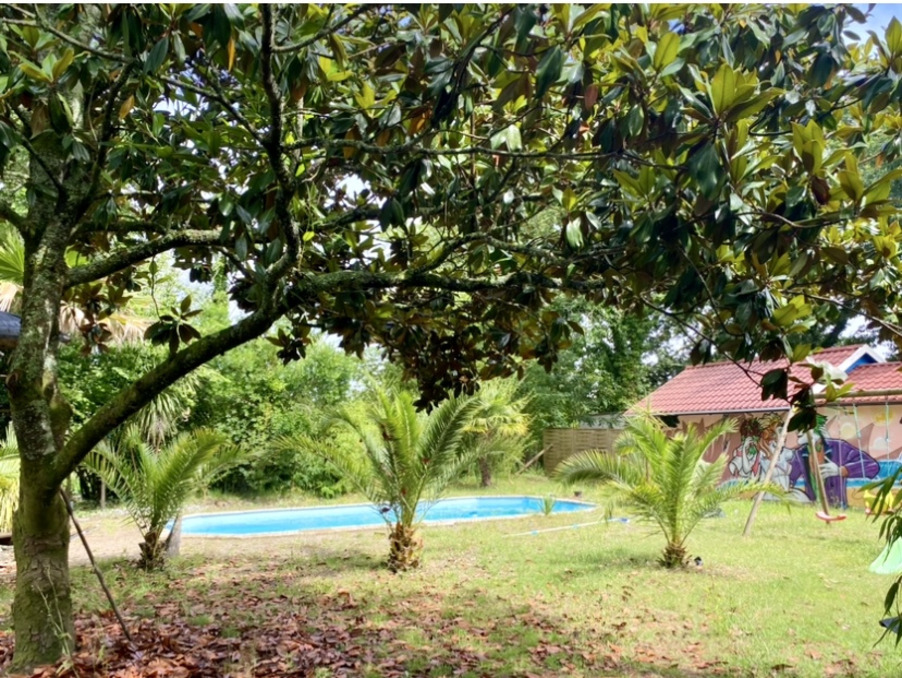 Magnifique domaine arboré de chênes lièges centenaires, chênes, palmiers, pins... Comprenant une grande maison principale de 10 pièces, studio indépendant et garage, grange aménageable en 4 studios (devis disponible), piscine, parking. Excellent rapport locatif. Idéal pour chambres d'hôtes, gites, lodge, surf camp...