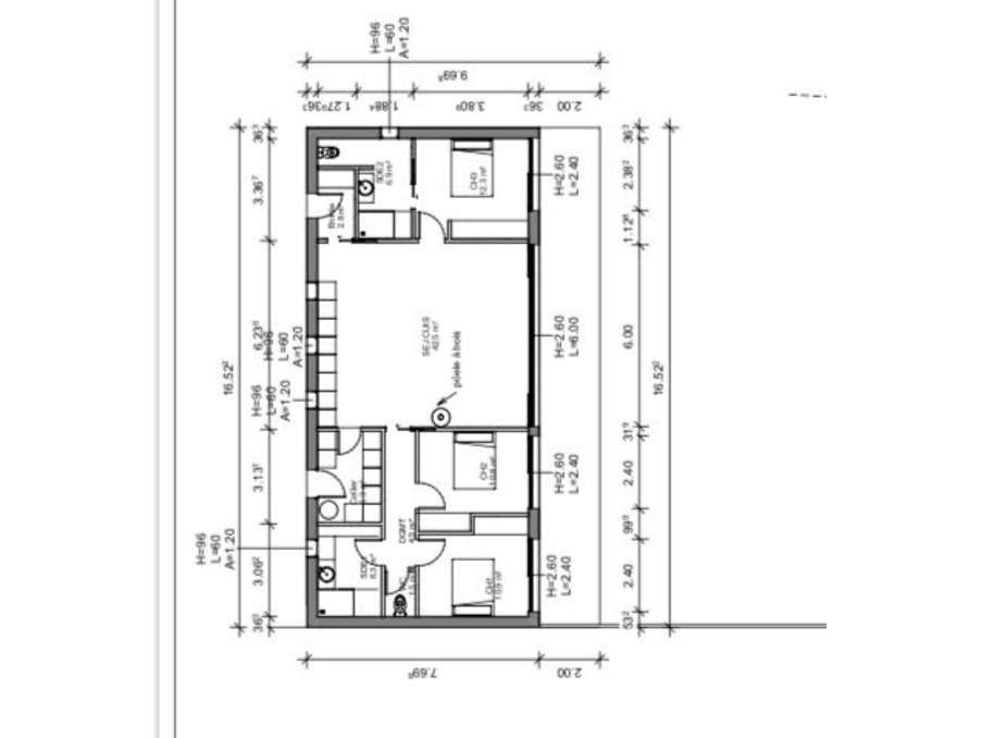 Maison bois neuve, au calme sous les pins, proche plages, lac et piste cyclable. Salon/salle à manger, cellier, 3 chambres, 2 salles d eau, 2 WC. Matériaux et prestations de qualité. Cuisine et terrasse à installer.