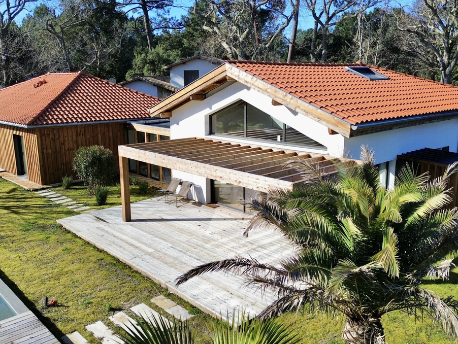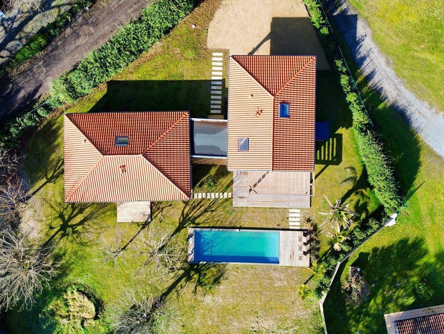 Dans un quartier recherché de Moliets, proche des plages et à l'ombre des pins, villa contemporaine type 7 entièrement rénovée en 2024. 2 espaces articulés autour d une vaste entrée vitrée. D'un côté une cuisine ouverte sur une pièce de vie lumineuse, un étage comprenant un vaste dortoir avec 2 salles deau, un cellier. De l'autre côté, un espace bureau, un grand salon TV donnant sur une suite parentale et 2 chambres avec salle deau. Piscine chauffée sur un beau terrain clos et paysagé. Vendue équipée, prestations de prestige avec une domotique par wifi.