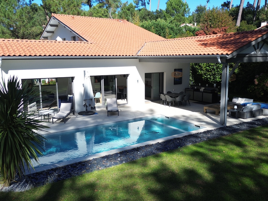 Située dans un environnement calme et recherché, à proximité du centre-ville et du lac, cette villa contemporaine de 2023 développe 187 m2 habitables sur un terrain plat de 1 500 m2.