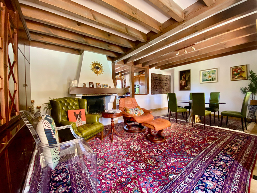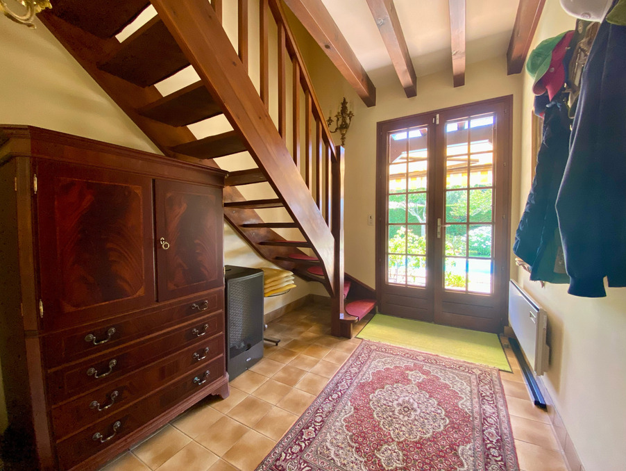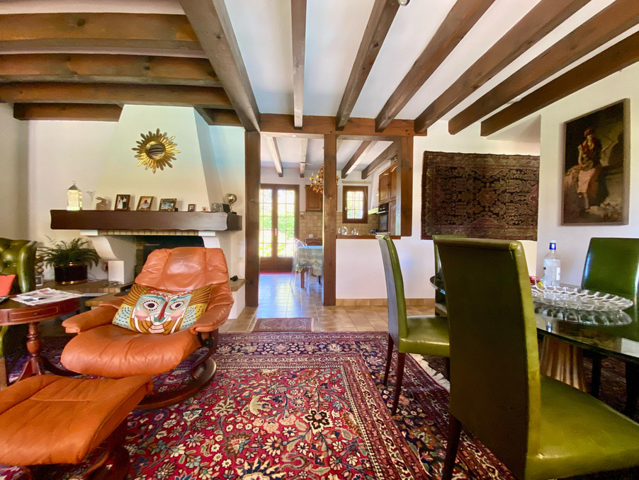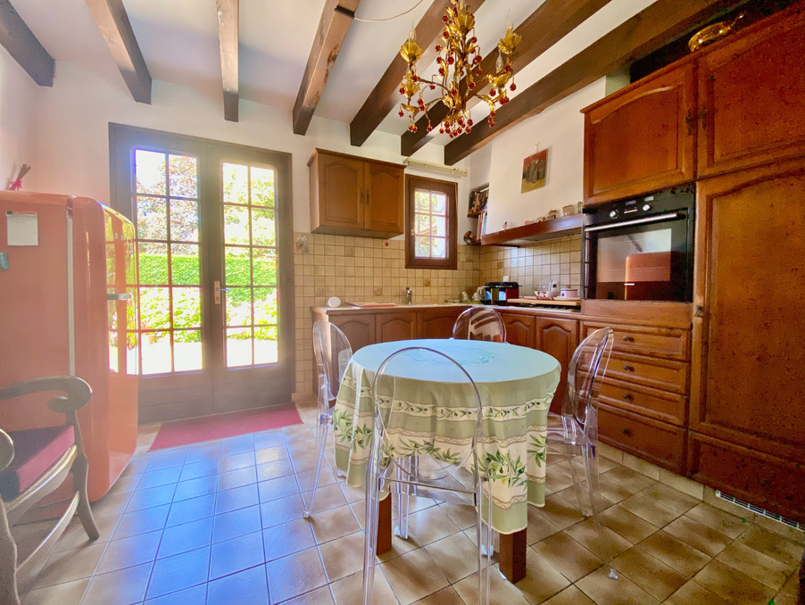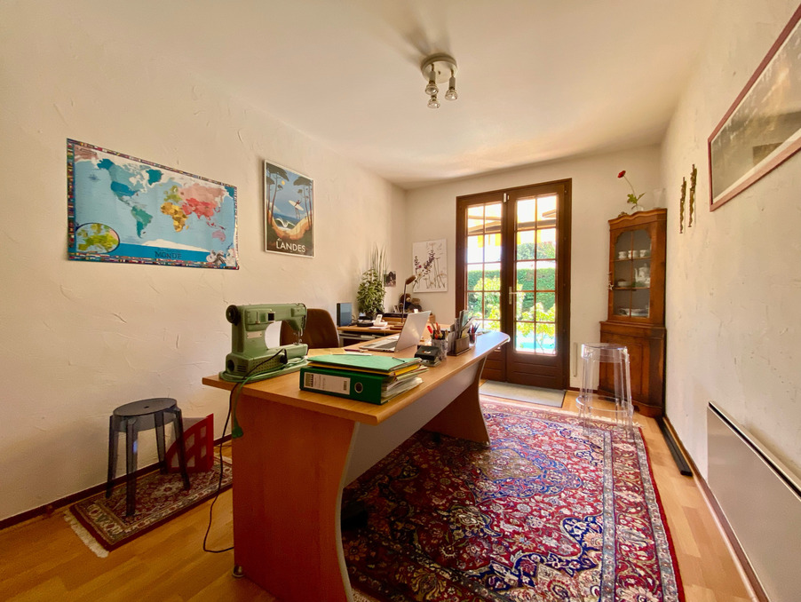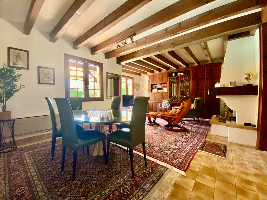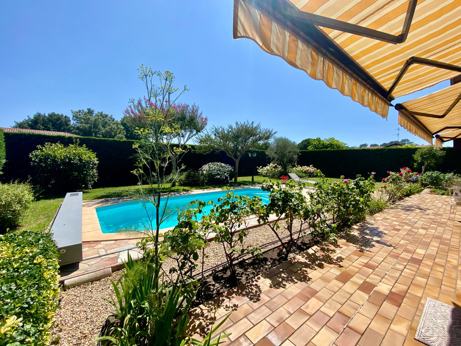 Dans un quartier rédidentiel calme, cette villa ouvrant plein sud sur sa piscine est de construction traditionnelle, au coeur d'un parc abrité fleuri. Avec de beaux volumes, parfaitement entretenue, aménagée et agrémentée, elle offre un séjour avec cheminée, cuisine séparée aménagée, quatre chambres, deux salles de bains, grand cellier, garage, terrasse avec stores. Son jardin est particulièrement soigné et agrémenté, entouré d'une haie épaisse qui préservera parfaitement votre intimité. A deux pas des écoles, au calme, dans une vie de village très agréable, baignée de soleil, cette propriété invite à la visite.